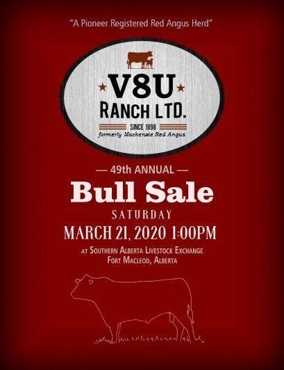 The 49th Annual V8U Ranch Red Angus Bull Sale is a go for Saturday, March 21, 2020!